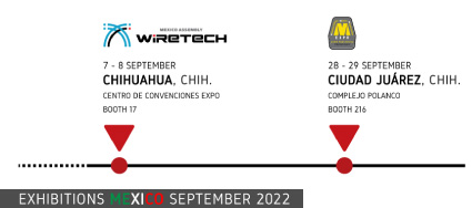 A primeira (Wire Tech) está prevista para 7 e 8 de Setembro no Centro de Convenciones Expo, em Chihuahua. Estaremos disponíveis no stand 17. Mais informações disponíveis em https://wiretechmx.com/