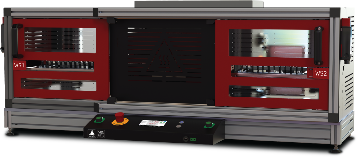 O sistema tem duas estações de trabalho independentes (com parâmetros de retração independentes), portas com fechadura e arrefecimento dinâmico para melhorar o processo. Cada estação de trabalho é fornecida com um suporte customizado que pode ser usado em vários componentes pequenos, tais como terminais de olhal e pequenos conetores.
